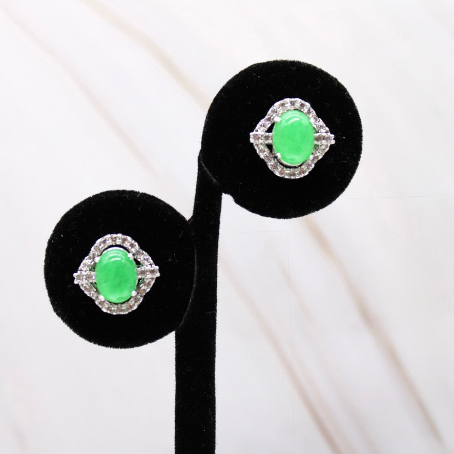 Elevate your style with these captivating Eye of Jade Earrings, designed to blend natural beauty with subtle sophistication. Each earring showcases a smooth, polished jade centerpiece, renowned for its calming energy and protective symbolism. Set in a graceful design that draws the eye and complements any look.