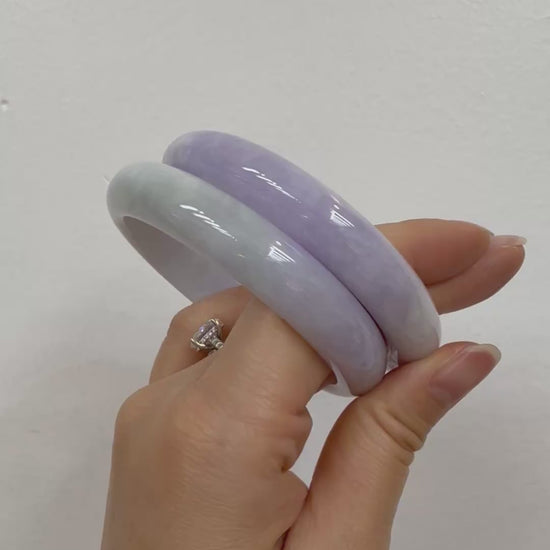 Lavender jade is one of the rarest colors of jadeite, formed only under exceptional geological conditions. Because of its rarity, we are only able to release a small number of bangles, and each piece has been carefully selected for its color, clarity, and craftsmanship. Some may have hints of green.